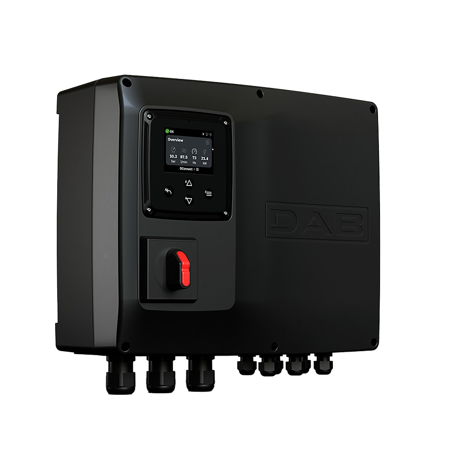 Ovládací panel pre ovládanie a ochranu jednofázových alebo trojfázových čerpadiel v domových, komerčných a hospodárskych systémoch, používaných na odstraňovanie kalu a vypúšťanie alebo napúšťanie (prečerpávanie) vody z/do nádrží. Vďaka možnosti nastavenia hodnoty prúdu je panel kompatibilný so všetkými typmi čerpadiel dodávaných s prúdom 1 až 29 A, ako ukazuje tabuľka kompatibility nižšie. Sprievodca na displeji alebo ďalších pripojených zariadeniach umožňuje vykonať nastavenie a uvedenie čerpadla do prevádzky v niekoľkých krokoch. Všetky nastavenia, ovládanie a zobrazenie alarmov sú tiež vykonávané priamo v smartfóne alebo tablete v aplikácii H2D cez digitálnu službu DConnect. Vstavaná Bluetooth a Wi-Fi konektivita. Podpora Modbus. Keď nie je dostupné Wi-Fi pripojenie, je možné použiť DAB Wi-Fi Modem Kit, ktorý sa pripája priamo k USB portu dostupnému vo vnútri ovládacieho panela NG.