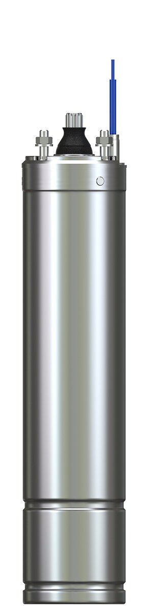 Ponorný dvojpólový asynchrónny previnuteľný elektromotor s mechanickými dielmi je vyrobený z nerezovej ocele AISI 304. Rotor je uložený v klzných radiálnych ložiskách, axiálne zaťaženie je zachytávané robustným klzným pätným ložiskom. Mazanie a chladenie radiálnych ložísk a panvy pätného ložiska je FDA olejovou náplňou. Stator je hermeticky uzavretý v nerezovom púzdre AISI 304L. Uzly vinutia (s ochranným vodičom) sú cez tesnený pripojovací konektor vyvedený plochým štvoržilovým vodičom nad čerpadlo, kde je možné bezproblémové napojenie vlastného prívodného kábla. Rozbeh a ochrana jednofázového motora sa všeobecne riešia napr. rozbehovou skrinkou CONTROL BOX, obsahujúcou rozbehový kondenzátor a ručne resetovateľnú ochranu motora proti preťaženiu. Ochranu trojfázového motora si zaisťuje užívateľ sám.