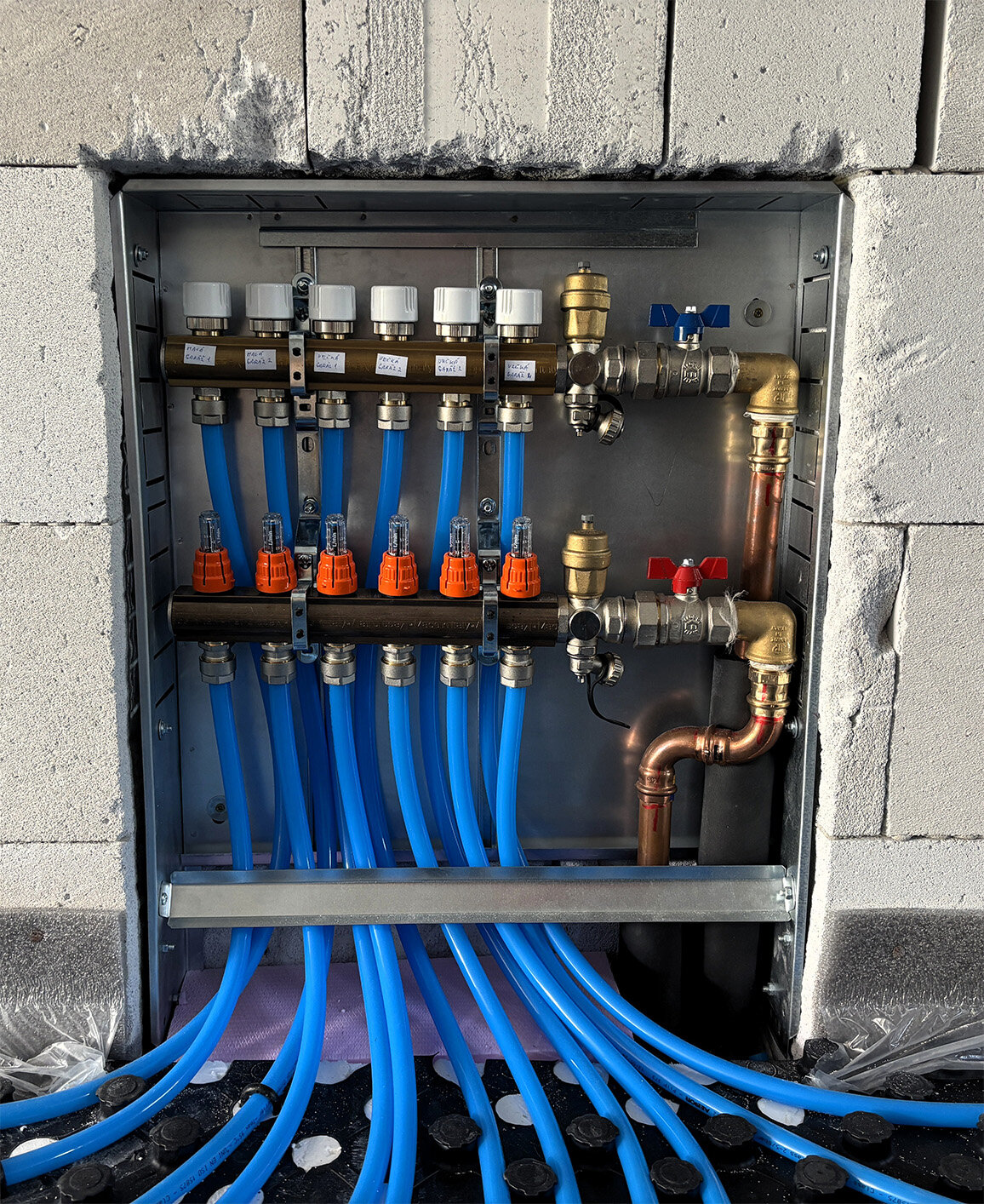 Použitý materiál: IVAR.COMBITOP ND 30 N Systémová izolačná doska - s ochrannou hydroizolačnou fóliou - 200 m2; IVAR.PE-Xa Potrubie PEX – 17×2 – 1200 m; IVAR.CS 553 VP Zostava rozdeľovač / zberač - pre podlahové vykurovanie - skriňa P-KLASIK 2 - 1"×EK; 6cestný; mosadz – 1 ks; IVAR.CS 553 VP Zostava rozdeľovač / zberač - pre podlahové vykurovanie - skriňa P-KLASIK 4 - 1"×EK; 10cestný; mosadz – 1 ks; IVAR.TP 4410 Zverné šróbenie - na potrubie PEX – 17×2 PEX-EK – 30 ks; IVAR.TA 4420 Zverné šróbenie - na viacvrstvové potrubie ALPEX – 16×2 ALU-EK – 2 ks; IVAR.DP 50 Obvodový dilatačný pás - samolepiaci s fóliou – 250 m