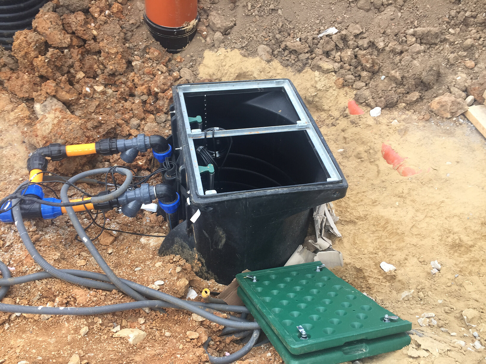 Použitý materiál: automatická prečerpávacia stanica DAB.FEKAFOS 1200 KOMPLET, elektronický ovládací panel DAB.E.BOX