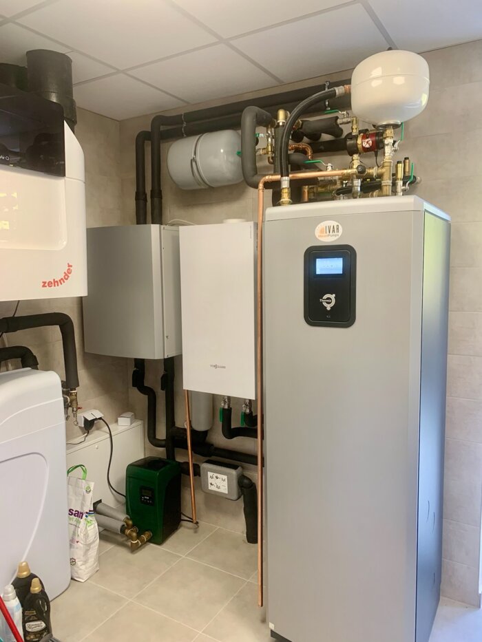 Použitý materiál: tepelné čerpadlo Thermia IVAR.HP DIPLOMAT OPTIMUM G3, zmäkčovací filter pre úpravu tvrdosti vody IVAR.DEVAP-KAB, elektronická domáca vodáreň DAB.ESYBOX