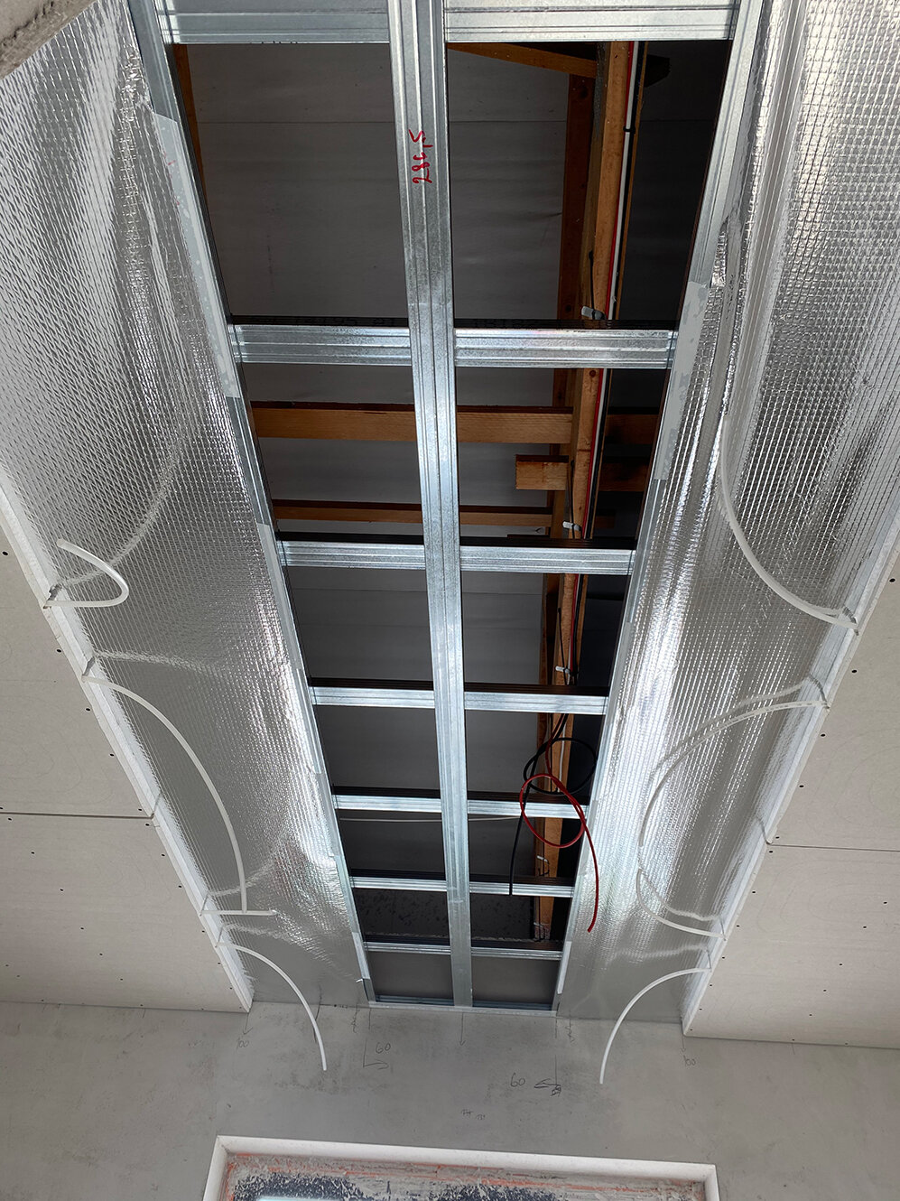 Použitá material: prízemie – potrubie IVAR.PE-Xc-ST + upínacie lišty v množstve 3000 m, poschodie – sádrokartónové panely IVAR.ECO-CLIMA v množstve 500 m2